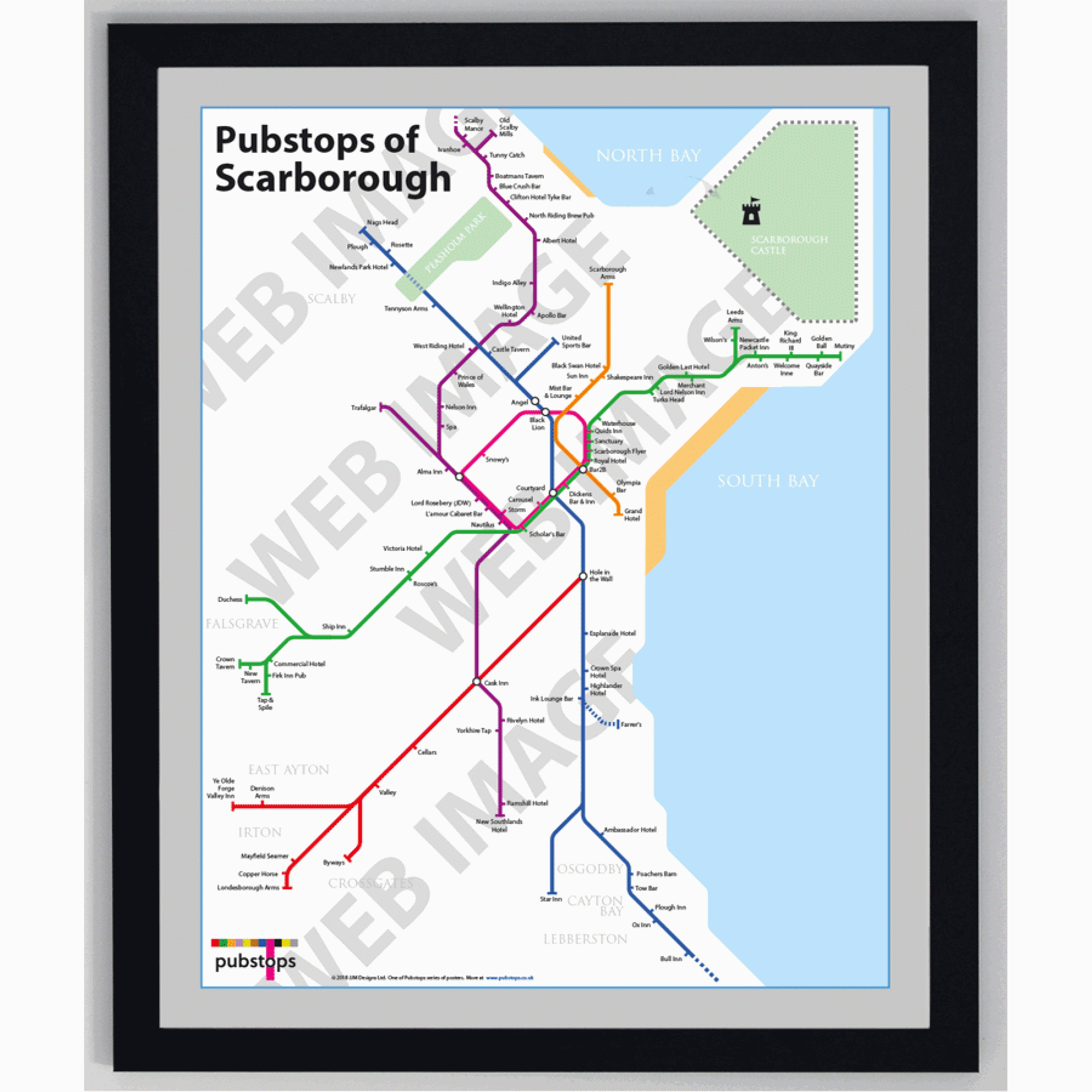 The Pubstops of Scarborough poster in a White Ash Frame. Print size 50cm x 40cm. Please click on ‘Frame Information’ for a more detailed look at the f..