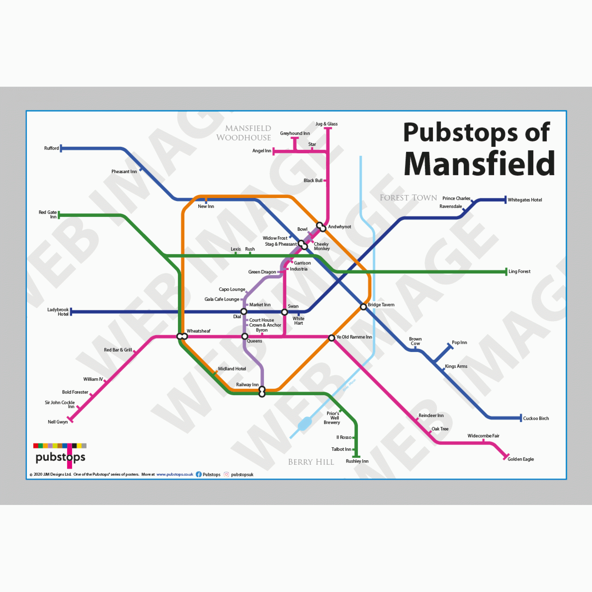 1st edition published 2020. The pubs and bars of Mansfield. A must for anyone who knows Mansfield and its many watering holes - or would like to get to know them! Print size A3 (29.7cm x 42cm)
