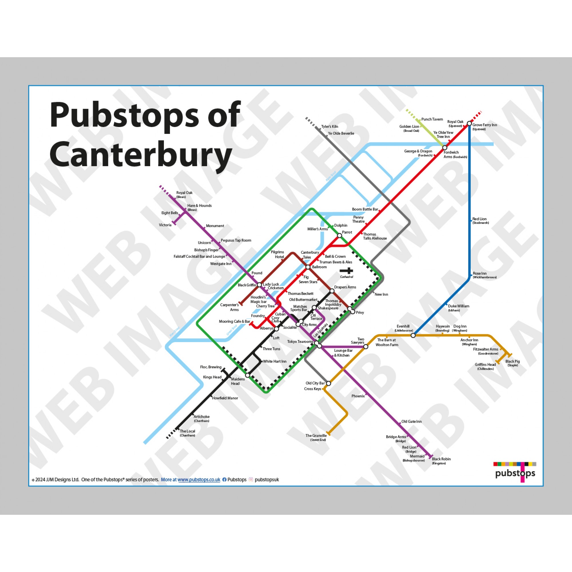 Unframed Pubstops of Canterbury poster in a luxury gift box. Print size 50cm x 40cm. See Gift Box Information tab for a closer look...