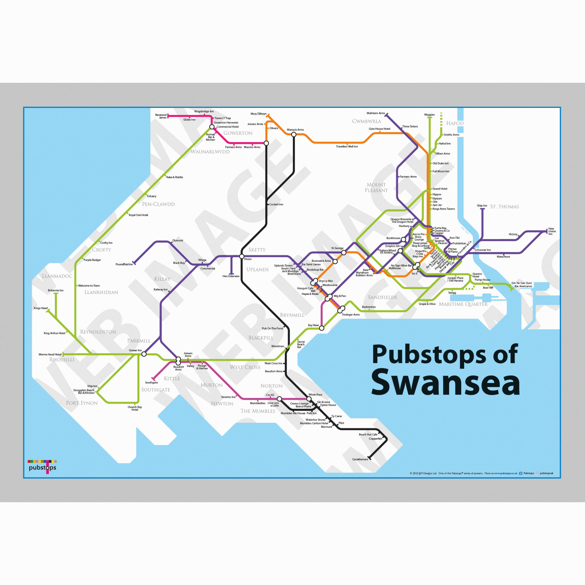 Unframed Pubstops of Swansea poster in a luxury gift box. Print size 70cm x 50cm. See Gift Box Information tab for a closer look...