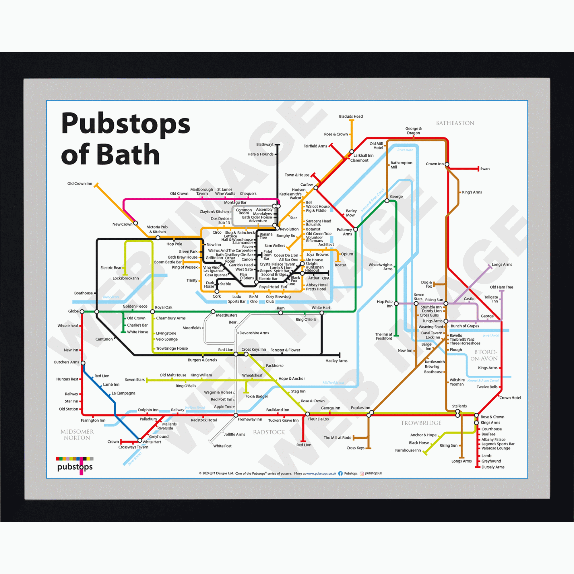 The Pubstops of Bath poster in a Black Ash Frame. Print size 50cm x 40cm. Please click on ‘Frame Information’ for a more detailed look at the frames a..